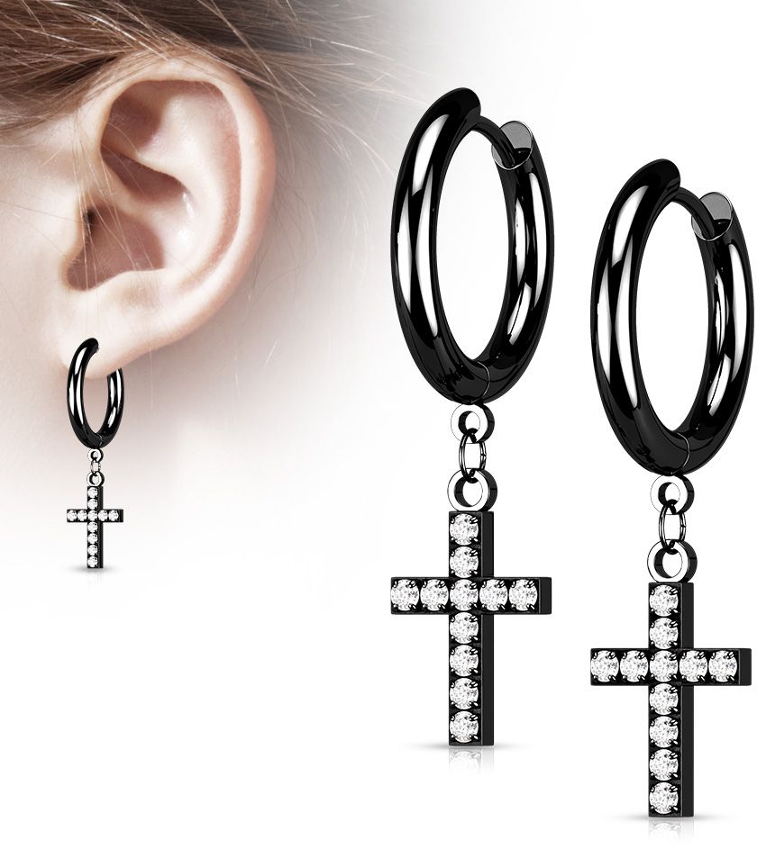 Korvakoru ristillä zirkoneilla 1kpl Korvakorut myydään yksittäin! Materiaali: Teräs Korvarengas kiinnitys Ristin koko n. 15x10mm Renkaan halkaisija 15mm
