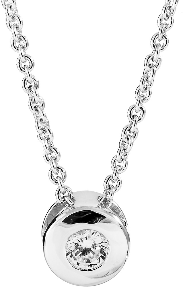 Hopeinen siro riipus, jossa kirkas zirkoni tuomassa pientä säihkettä kaulakoruun. Riipukseen kuuluu myös ketju, jonka pituus on 45cm.