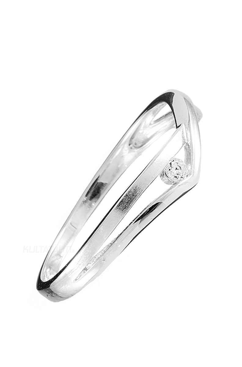Siro hopeasormus zirkonilla. Sormusrungon kaksiosaisen kaarien välissä säihkyy kirkas zirkoni.