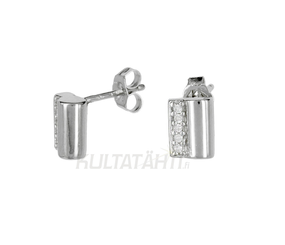 Suorakaiteen mallisten hopeakorvanappien toista reunaa koristaa zirkoniajono