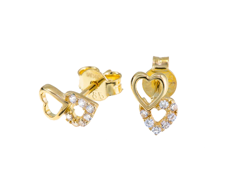 Kauniit kaksista sydämestä koostuvat sydänkorvakorut. Korvakorujen toisessa sydämessä säihkyy kirkkaat zirkonit.