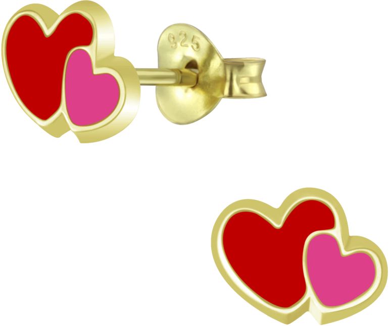 Kullattu tuplasydän korvakorut 925 hopea Kullattu Emaloidut sydämet Tappi kiinnitys