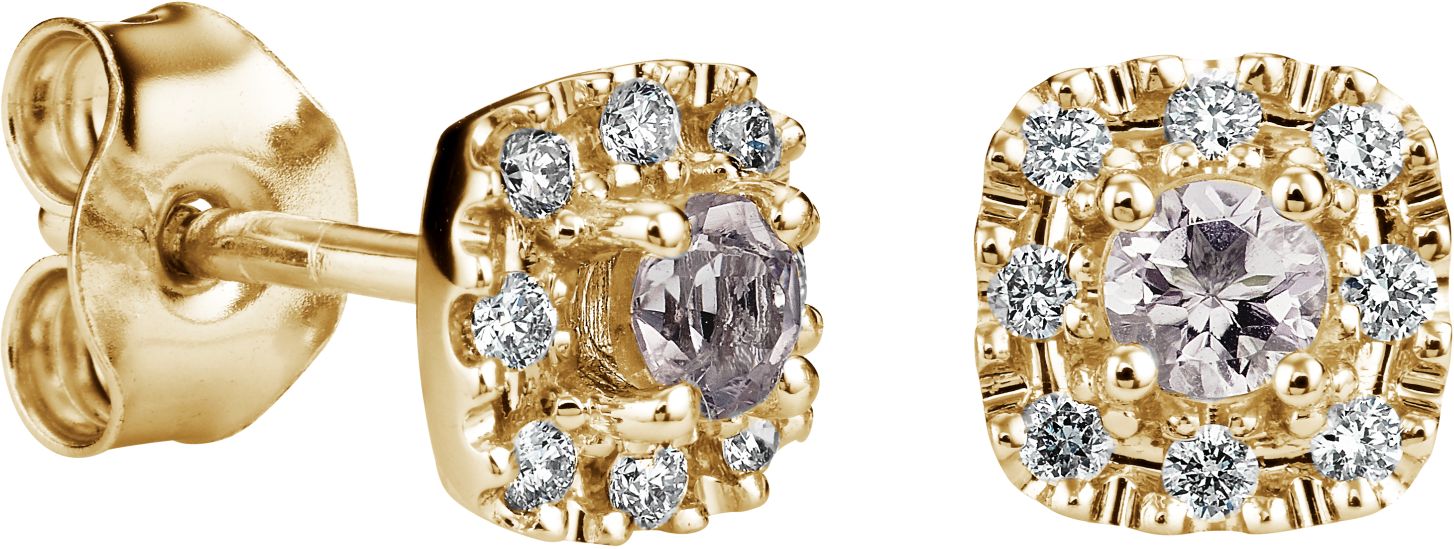 Yksi rakastetuimmista Kohinoor-perheistä on Valerie. Timanttikorvakoruissa on cushion-muotoinen halo-istutus, jonka keskellä säihkyy 3mm morganiitti ja ympärillä kahdeksan timanttia.