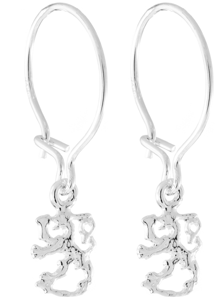 Koukkumallin hopeiset korvakorut, joissa n. 6,6mm suomileijona.