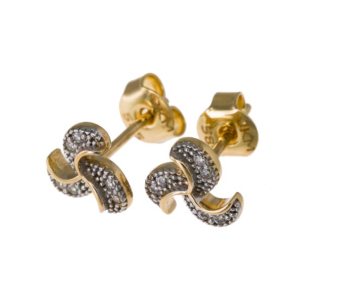 Kultaiset korvakorut zirkoneilla "kolme siipeä"