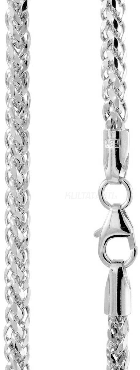 Upea valkokultainen tähkä tyyppinen kaulakoru timantileikatuilla reunoilla.