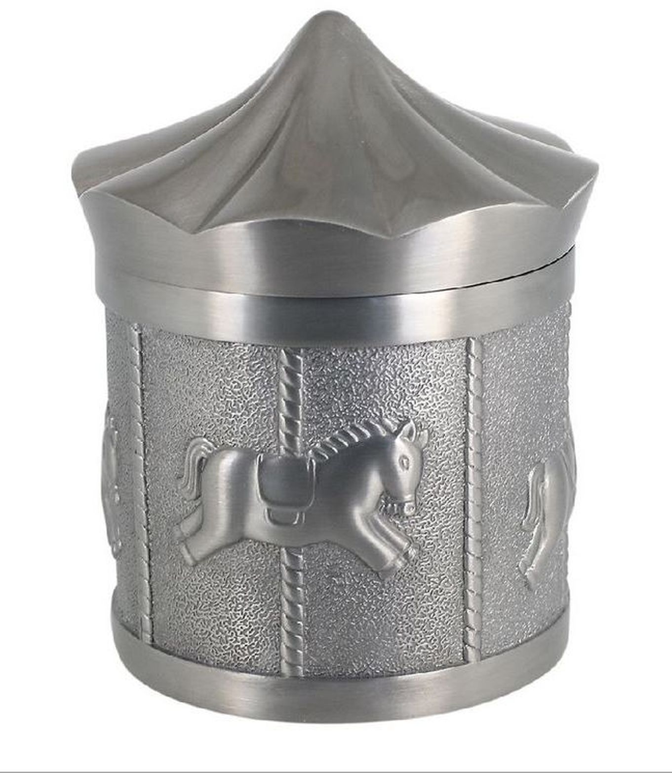 078685 Pankki Soiva Karuselli Tuotteen ominaisuudet: Materiaali: Tinattu metalliseos Koko: Leveys:7,5cm, Korkeus 10cm Soittaa kaunista sävelmää