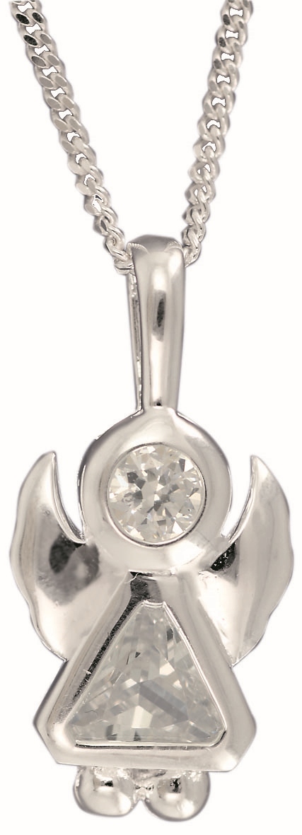 Enkeli-riipus kirkkaalla kivellä ja 36 cm ketjulla Kaunis pieni enkeli on täydellinen lahja ristiäisiin. Riipuksen korkeus noin 23 mm ja leveys 11 mm Ketjun pituus 36 cm
