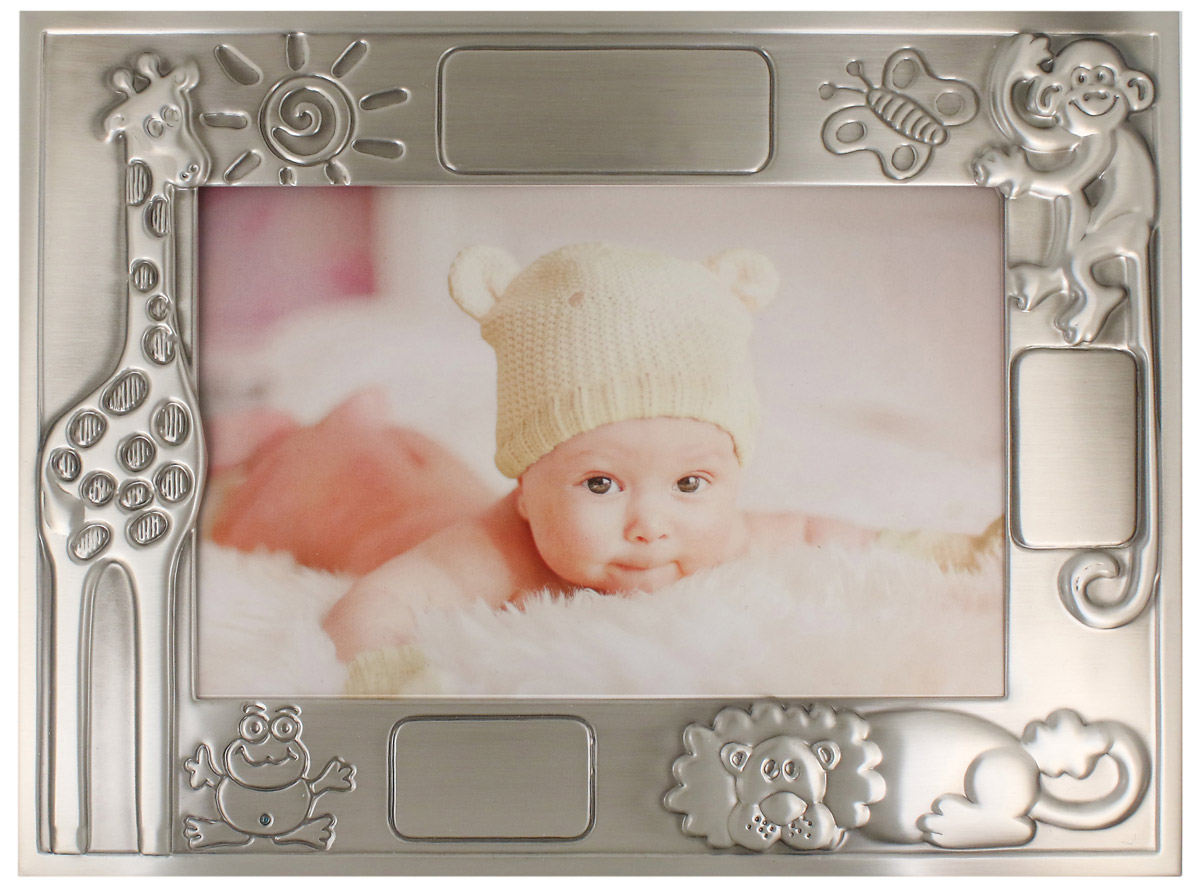 Ihastuttava valokuvakehys 078577, jossa kolme erillistä kaiverruspaikkaa, joihin voidaan kaivertaa esimerkiski nimi ja päivämäärä, paino ja pituus.