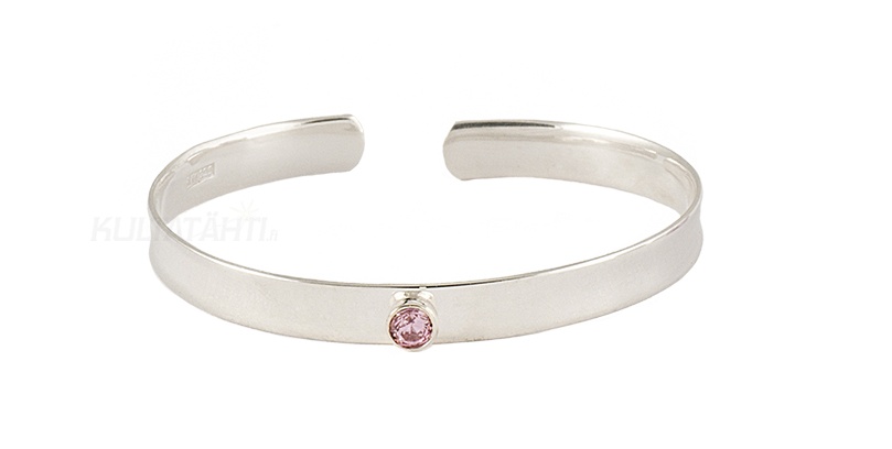 Suloinen hopea kasteranne vaaleanpunaisella zirkonilla