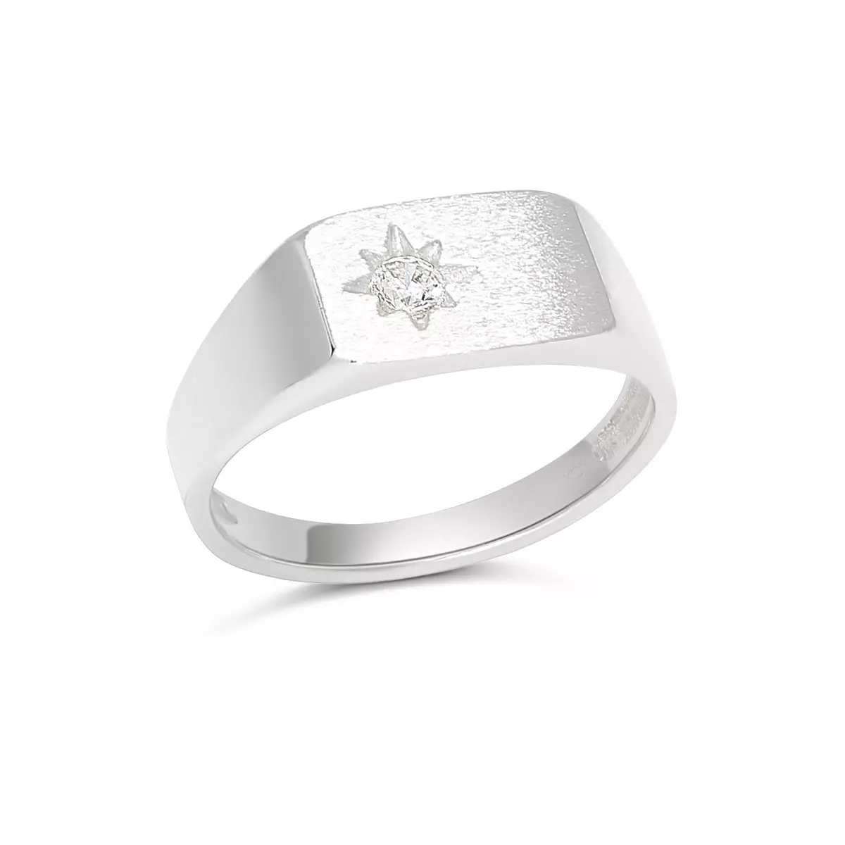 Hopeakastesormus kirkkaalla zirkonilla, kantasormus, tähti istutus.