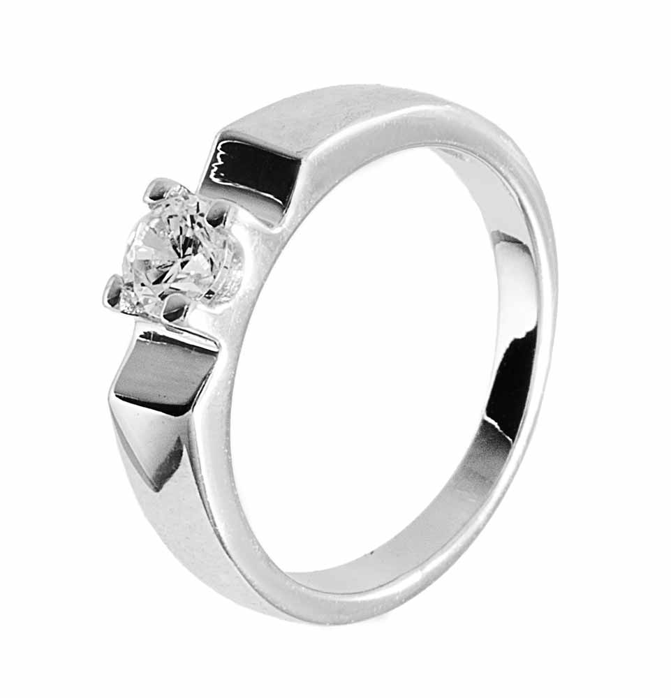 Ihastuttuva hopeinen kastesormus, jossa säihkyy kirkas zirkoni.