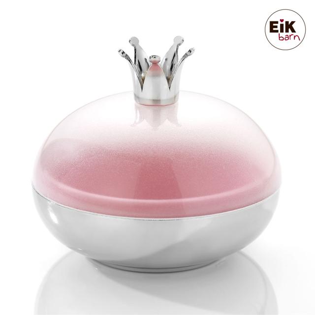 Prinsessa korurasia Pyöreä korurasia vaaleanpunaisella kannella ja pikku kruunulla. 90 x 100 mm Akryylikansi, alaosa tinaa