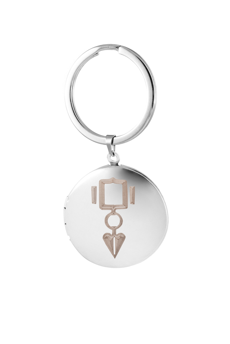 Kätevä avaimenperä, jossa pyöressä medaljongissa on toisella puolella on helan kuva ja toisella filigraani kuvio. Medaljongin sisälle vot lisätä vaikkapa kuvan rakkaimmastasi.