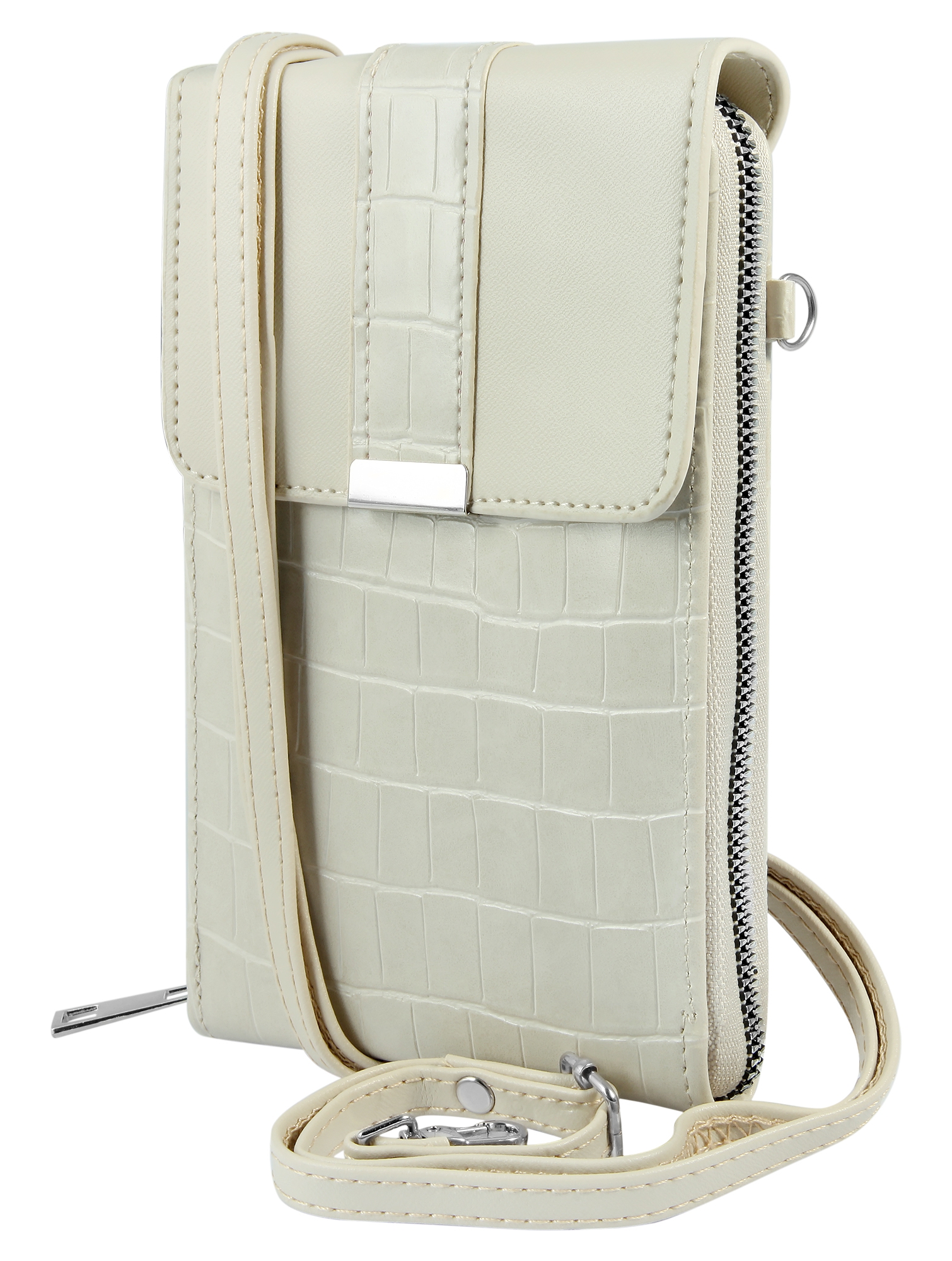 Kompakti matkapuhelimen olkalaukku on valmistettu tukevasta ja kestävästä keinonahasta ja sitä on saatavana useissa muodikkaissa väreissä. Se on ihanteellinen moneen vapaa-ajan toimintaan ja voi korvata suuren käsilaukun kantamisen vaivan.