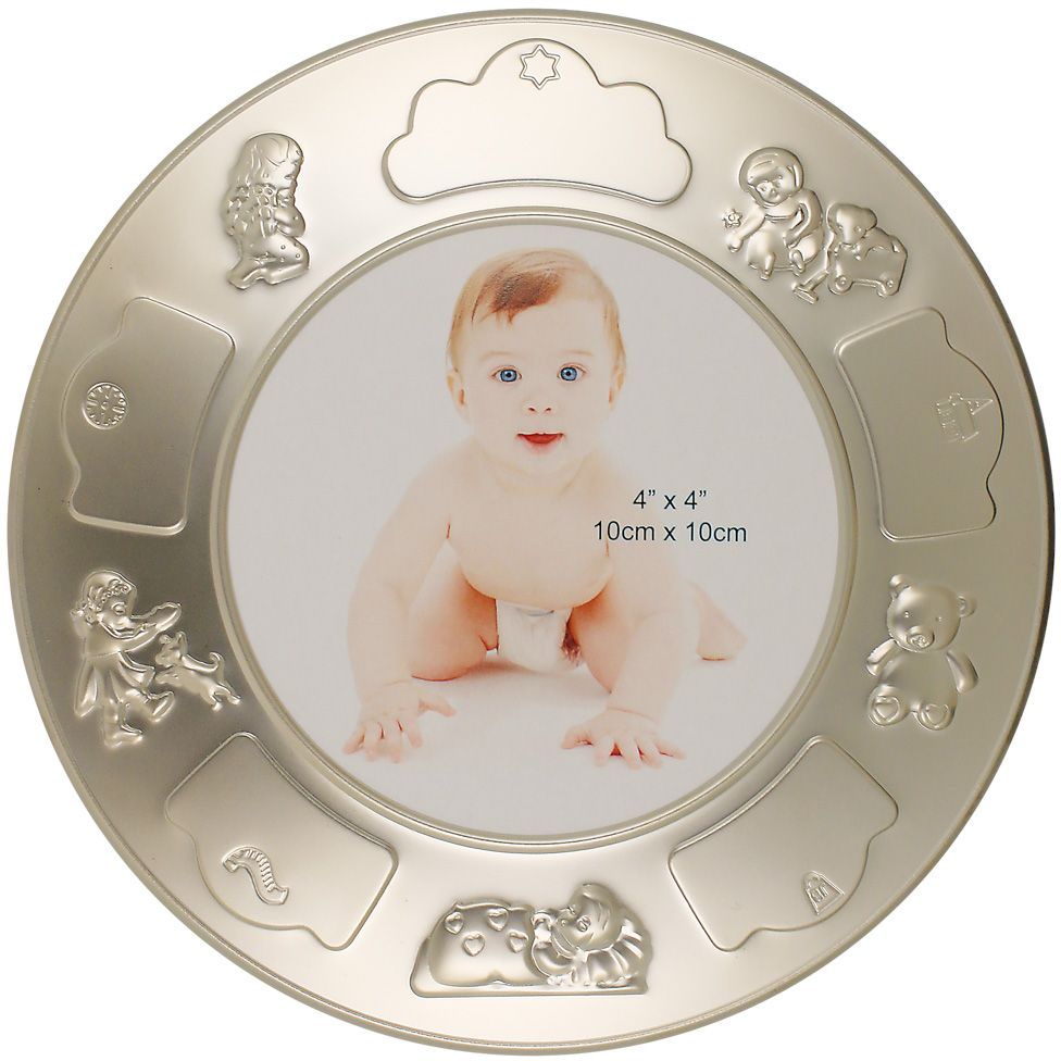 Kastekehys poika 078606 Pyöreä kastekehys tytölle. Halkaisija n.17cm Kuvakoko 10cm x 10cm Valmistettu tinasta.