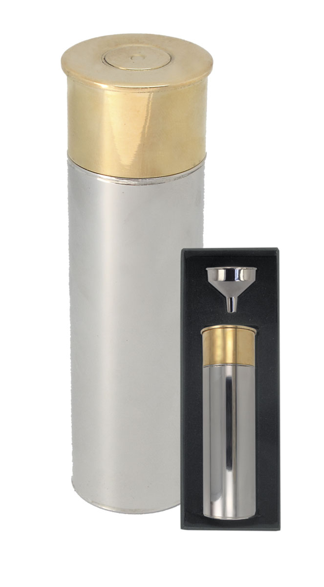 Mustaan lahjapakkaukseen aseteltu taskumatti metsästäjälle. Vastuullinen metsästäjä tietää, että alkoholi ja metsästys eivät kuulu yhteen samaan aikaan, mutta onnistuneen jahdin jälkeen voi palkita itsensä ja metsästysseurueen.