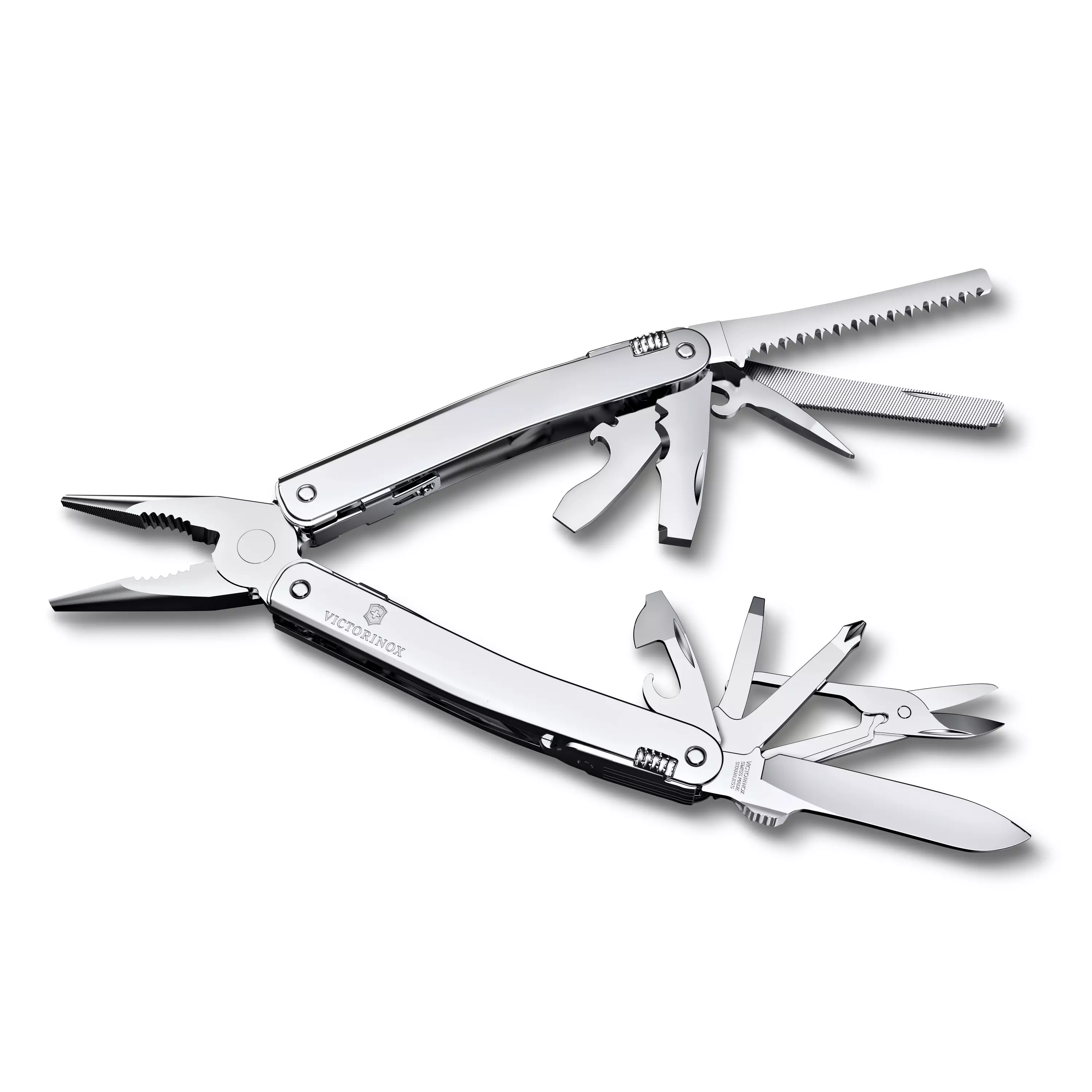 Järeä monitoimityökalu ammattimaiseen käyttöön, jonka puukon terän voi avata helposti yhdellä kädellä. Swiss Tool Spiritin terät ovat lukittuvia ja siksi sen käyttö on turvallista. Kaikki terät aukeavat suoraan sivuilta ilman että pihtejä tarvitsee avata. Swiss Tool Spirit on alkuperäistä Swiss Tool -työkalua kevyempi ja pienempi malli, mutta samoilla vahvoilla ominaisuuksilla ja laadulla. Muotoillut kahvat antavat erinomaisen otteen työkalusta. Työkalun mukana tulee musta, nylonista valmistettu Molle-kotelo. Pituus suljettuna 106 mm.