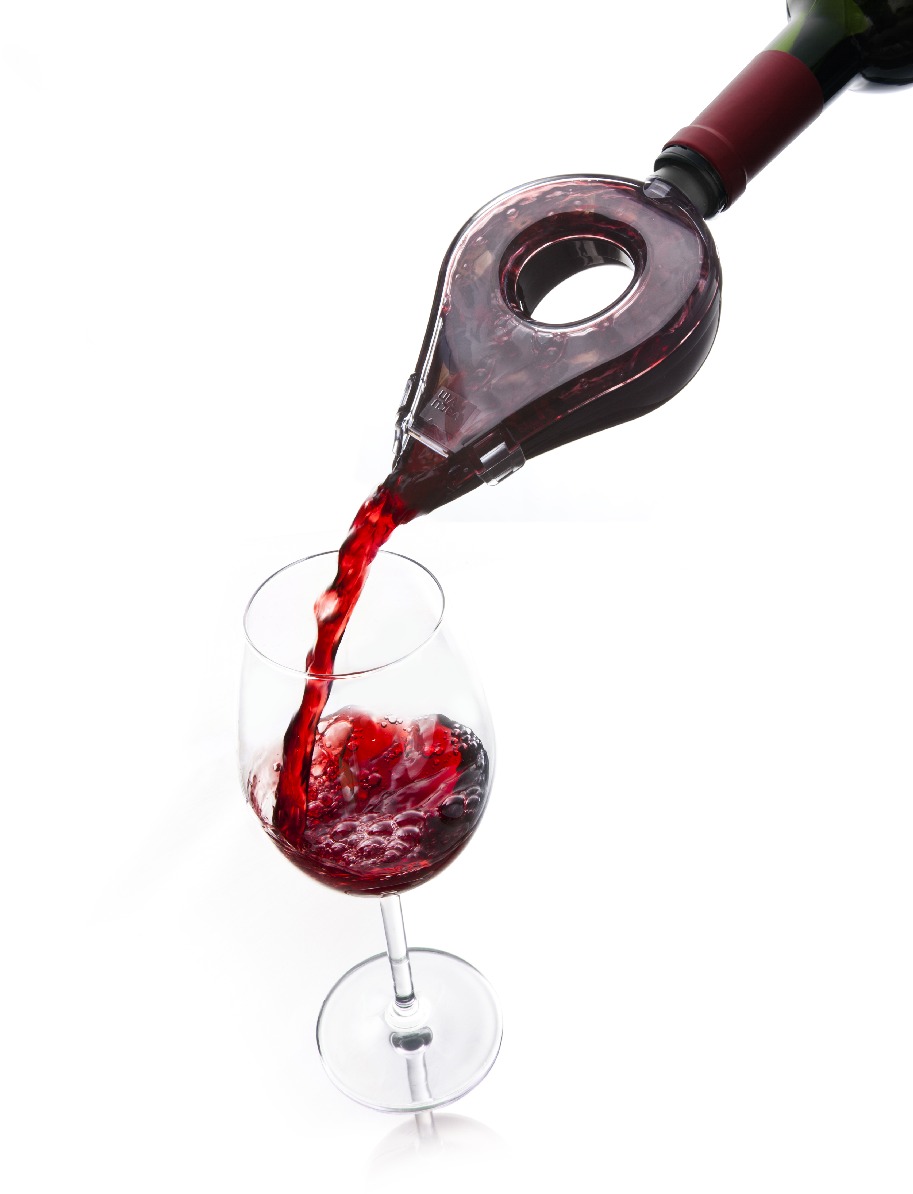 VacuVin viinin ilmaaja. Tämän läpi matkatessaan viinin maku hieman pehmenee, ja tämä myös helpottaa kaatamista. Ilmaajan läpikuultava osa on irroitettava, joten puhdistus on helppoa.Suositellaan käsinpesua.Materiaalina on vahva muovi.