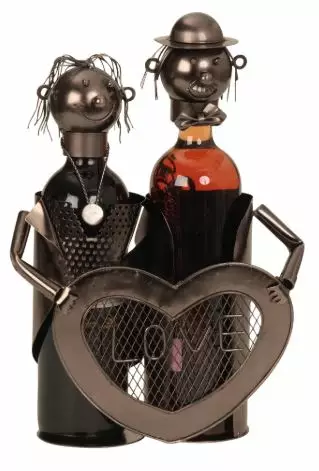 Rakastunut pari kannattelee Love-tekstiä ja samalla toimivat loistavana viinipullontelineenä. Valmistettu metallista.