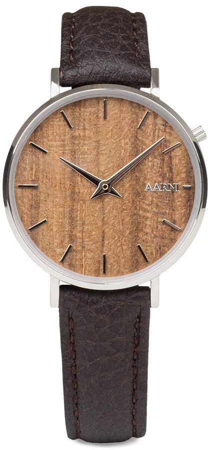 Keveyttä ja arvokkuutta yhdistettynä hirvennahan pehmeyteen. Aarni Taiga on suunniteltu erityisen ohueksi, jolloin se tuntuu uskomattoman huomaamattomalta ranteessa. Hopeiset yksityiskohdat ja kauniin tiikistä valmistettu kellotaulu luovat harmonisen yhdistelmän.