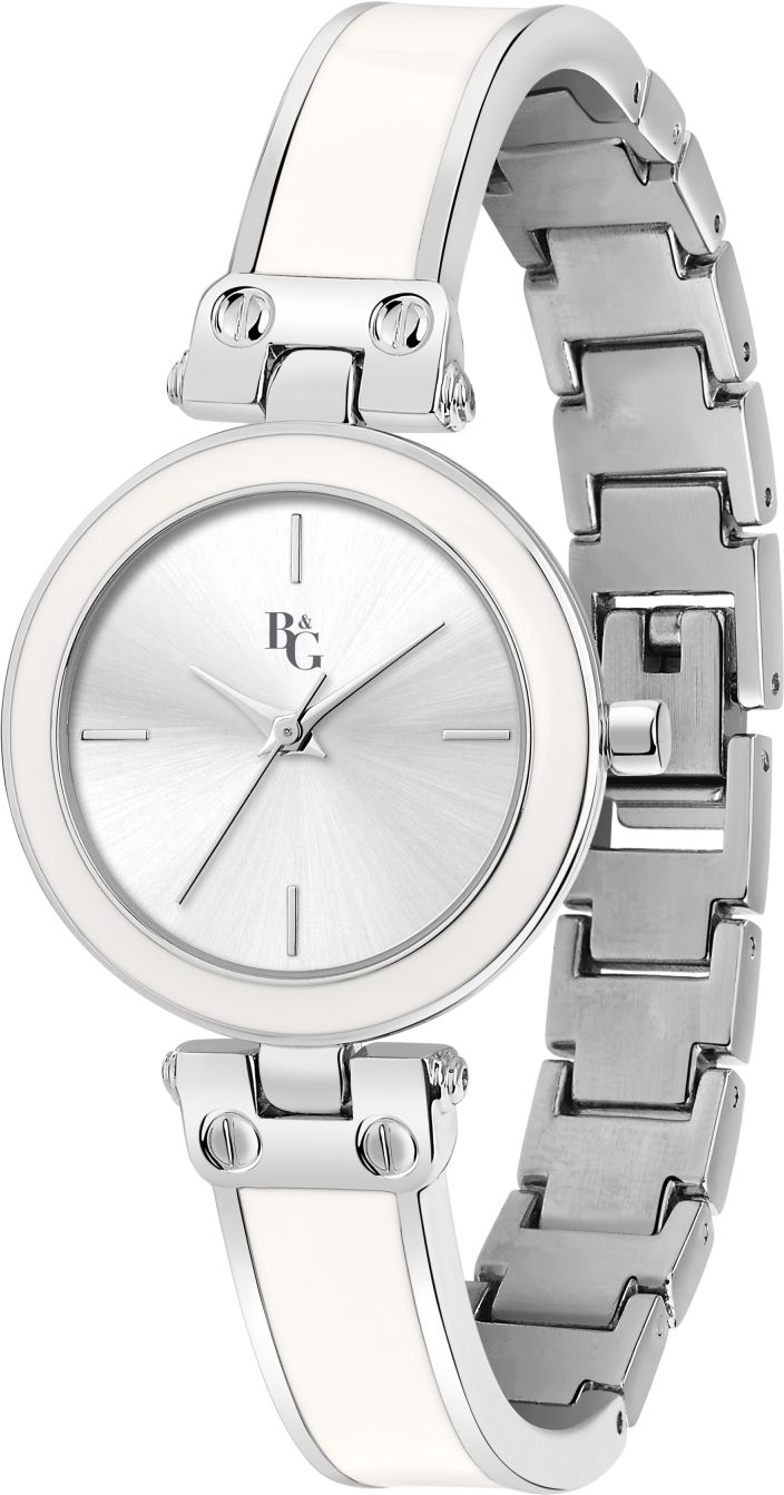 B&G Bangle -kello koostuu hopean ja valkoisen värimaailmasta. Huolellisesti muotoiltu ranneke on korostettu elegantilla ja hienostuneella tavalla, mikä tekee siitä täydellisen lisän niille, jotka haluavat erottua joukosta. Tämä kello ei ole pelkästään ajan mittari, vaan myös tyylikäs asuste, joka täydentää käyttäjänsä tyylin ja antaa sille hienostunutta eleganssia.