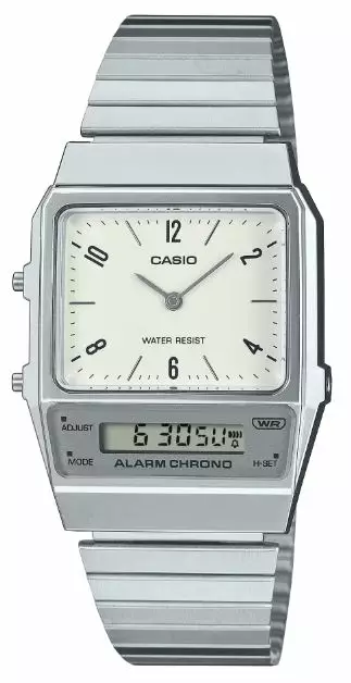 CASIO VINTAGE AQ-800E-7A2EF on täydellinen yhdistelmä klassista 80-luvun estetiikkaa ja nykyaikaisia ominaisuuksia. Hopeanvärinen ruostumattomasta teräksestä valmistettu ranneke ja tyylikäs vaalea kellotaulu tekevät tästä kellosta sekä elegantin että käytännöllisen valinnan