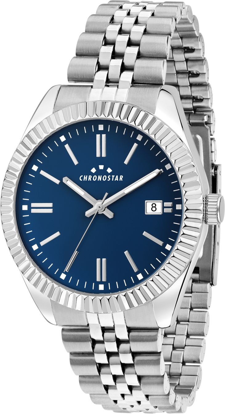 Chronostar Daily R3753312008 tarjoaa yksinkertaista ja eleganttia muotoilua, joka sopii täydellisesti jokapäiväiseen käyttöön. Hopea ja tummansininen väriteema. Tämä malli on myös varustettu päivyrillä, mikä löytyy kello kolmesta.