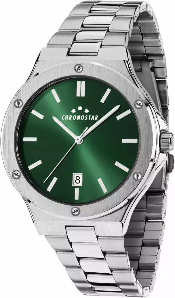 Chronostarin Halt-tuotemalliston miesten rannekello. Vihreä kellotaulu ja teräksinen ranneke luovat vahvan, mutta hillityn ilmeen. Puhdaslinjainen muotoilu tekee siitä täydellisen valinnan niin tyylitietoiseen arkeen kuin rentoon iltamenoihin.