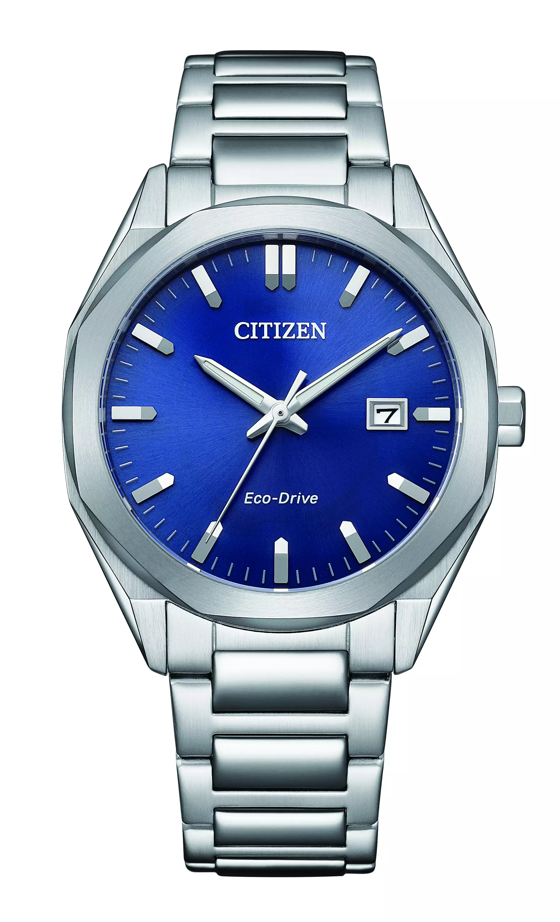 Citizenin Eco-Drive malliston miesten rannekello. Eco-Drive mallit muuntavat valon energian kellon virtalähteeksi ja varastoivat ylijäämän kennoon. Täydellä latauksella Eco-Drive kello toimii kuukausia jopa pimeässä. Se on suunniteltu lataamaan tavallisista jokapäiväisistä valonlähteistä, auringonvalon ollessa paras vaihtoehto. Noin 5-6 tuntia kuukaudessa auringonvalosta ladattuna riittää täyteen varaukseen. Ruostumattomasta teräksestä valmistettu runko ja ranneke. Tummansininen kellotaulu, hopeansävyisillä indekseillä ja osoittimilla. Päivyri sijaitsee kello kolmessa. Kellon vesitiiviys luokka mahdollistaa pintauinnin ja snorkkelisukelluksen. Kellolle kirjoitetaan kahden vuoden takuu ja se toimitetaan tuotemerkin omassa rasiassa.