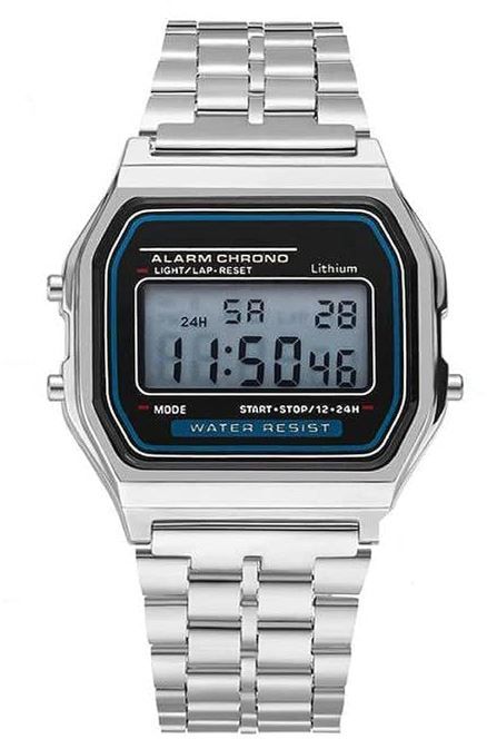 Digital Retro Steel A168STEEL Retro henkinen digital. Kellonaika, herätys ajanotto ja ajastin. 30m vesisuojattu.