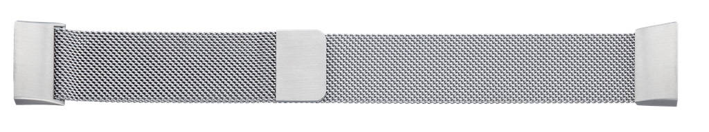 Mesh-mallinen hopeinen ranneke Fitbit Charge 3 -älykelloon. Ruostumatonta terästä magneettisella lukolla. Maksimipituus 225mm.