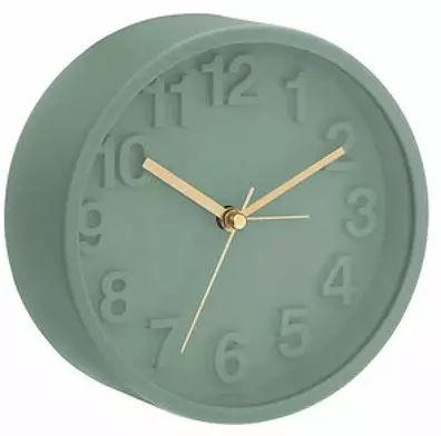 Herätyskello 3D 13cm Pyöreä Vihreä Vihreän sävyinen herätyskello, kultaisen sävyisillä viisareilla. Kellon halkaisija on noin 13 cm. Toiminta yhdellä AA-paristolla. Tuotteen ominaisuudet:... Lue lisää