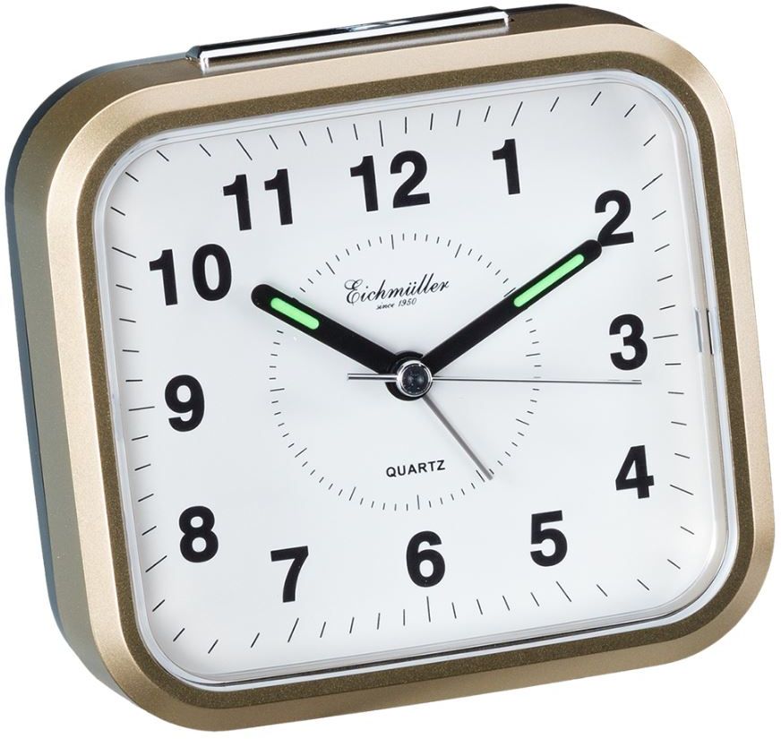 Herätyskello 9836-05 Tuotemerkki: Eichmüller Tuotenumero: 9836-05 Väri: Kulta Materiaali: Muovi Mitat: 100x90 mm Torkku: Kyllä Valo: Kyllä