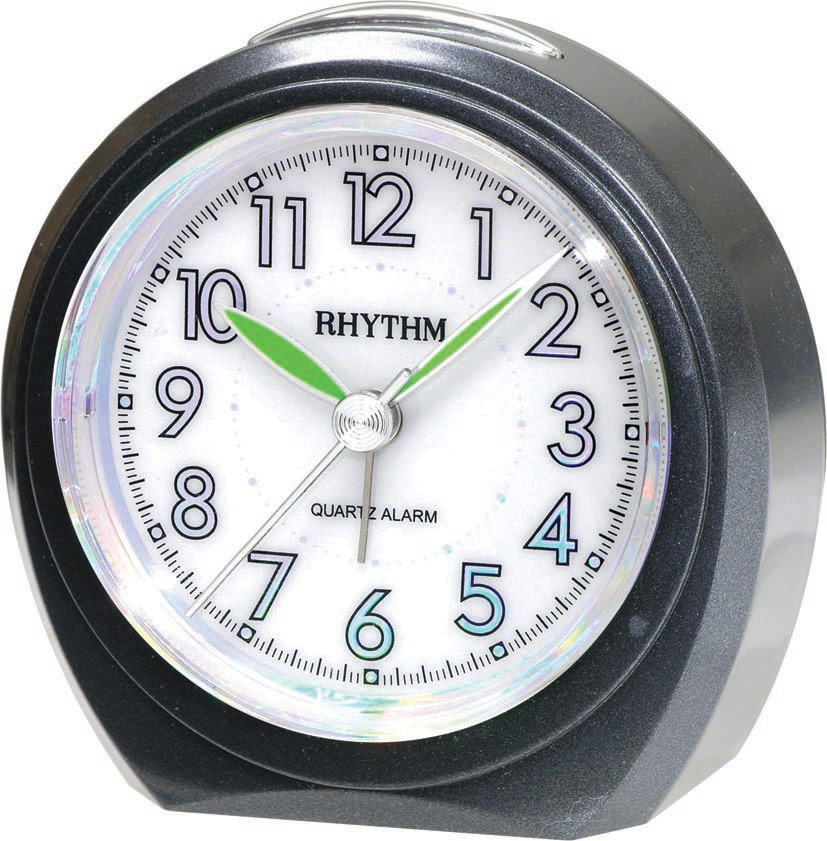 Herätyskello Rhythm CRE815-NR71 Tyylikäs musta herätyskello valolla, torkulla ja liukuvalla sekuntiosoittimella.