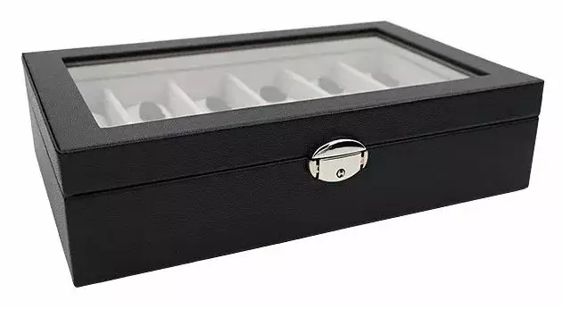 Säilytä kellosi siististi ja turvallisesti tällä elegantilla keinonahkaisella kellolaatikolla, joka on suunniteltu 12:lle rannekellolle. Laadukas viimeistely, selkeä lasikansi ja pehmeät kellotyynyt tekevät siitä täydellisen ratkaisun niin kotiin kuin lahjaksi kelloharrastajalle.