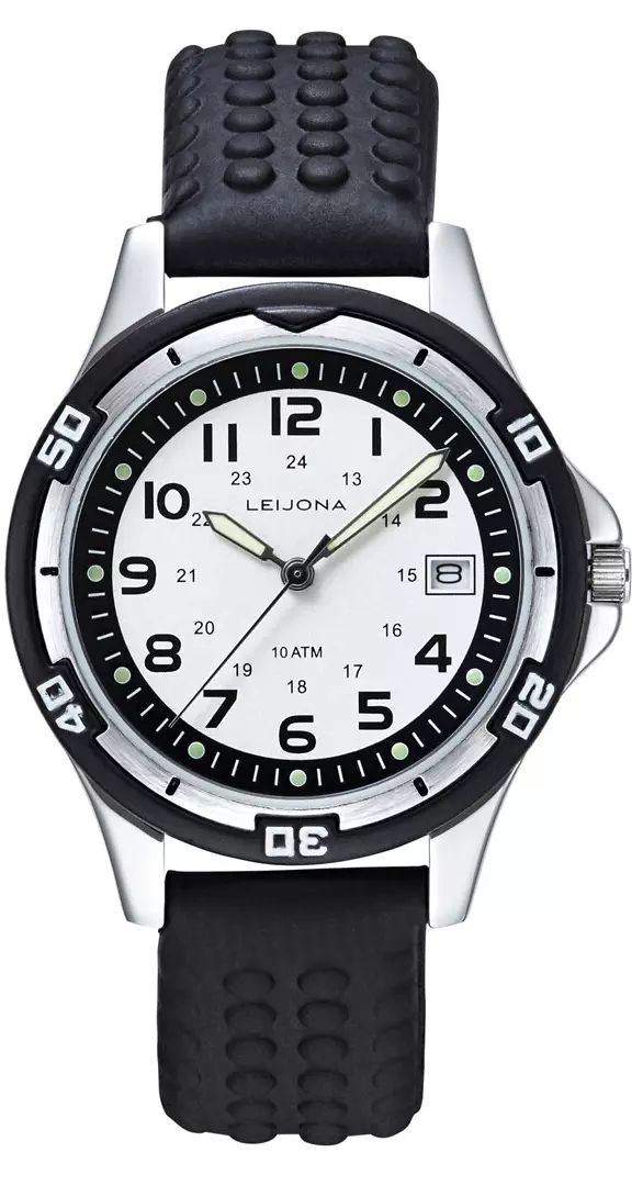 Leijonan nuorisomalliston tyylikäs rannekello, jonka voi huoletta antaa hurjapäisenkin nuoren ranteeseen. Musta miellyttävä polyuretaaniranneke yhdistettynä peräti 100 metrin vesitiiveyteen tekee tästä kovaakin käyttöä kestävän rannekellon.
