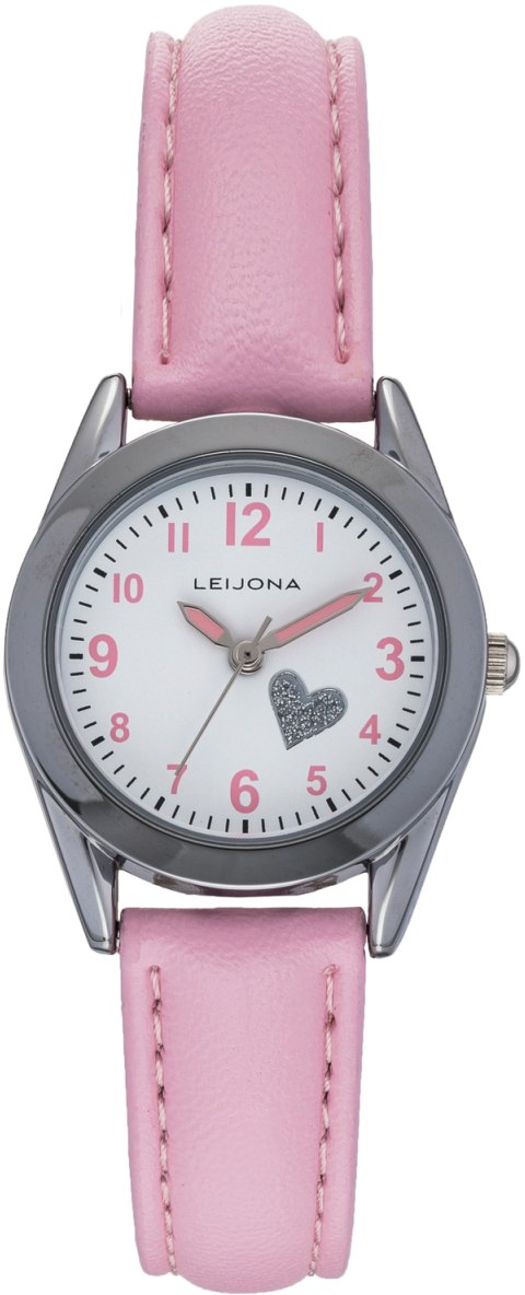 Leijona tyttöjen rannekello, jonka kellotaulua koristaa tyylikäs kimallettu sydän. Kellotaulua koristavat lisäksi vaaleanpunaiset indeksit ja viisarit. Kellon rannekekkin on vaaleanpunainen, tehden kellosta unelman tytölle. Kellon halkaisija on 27mm ja vesitiiveys 50 metriä, joten se kestää maksimissaan suihkussa käynnin.