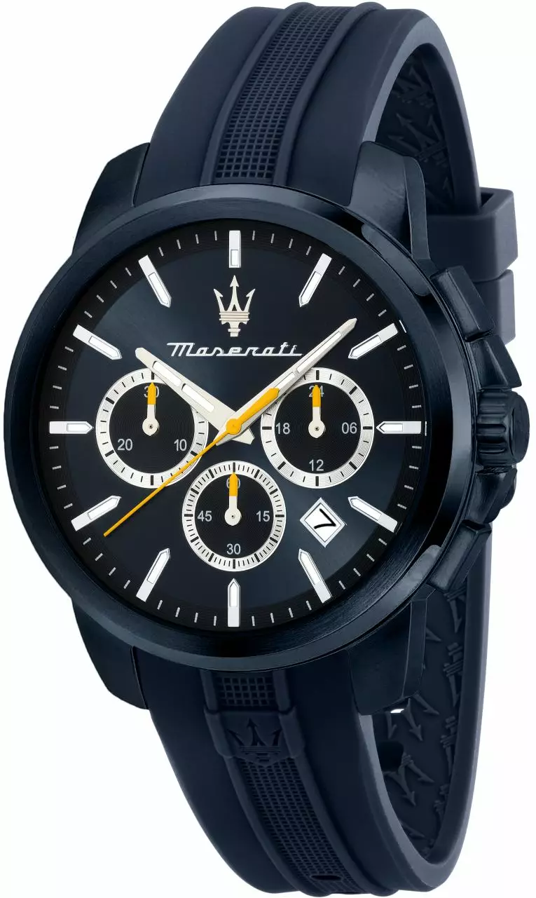 Tyylikäs Maserati Successo omaa autourheilun geenit! Kellon runko on muotoiltu Italiassa, eikä tässä muotoilussa olla säästelty. Runko on valmistettu lujasta ruostumattomasta teräksestä ja sen halkaisija on 42mm. Kellon vetonupin molemmin puolin voit nähdä suojareunat, jotka suojelevat nuppia kolhuilta. Suojareunuksiin on integroitu myös kronografin painonapit, mikä saa ne sulautumaan kellon runkoon.