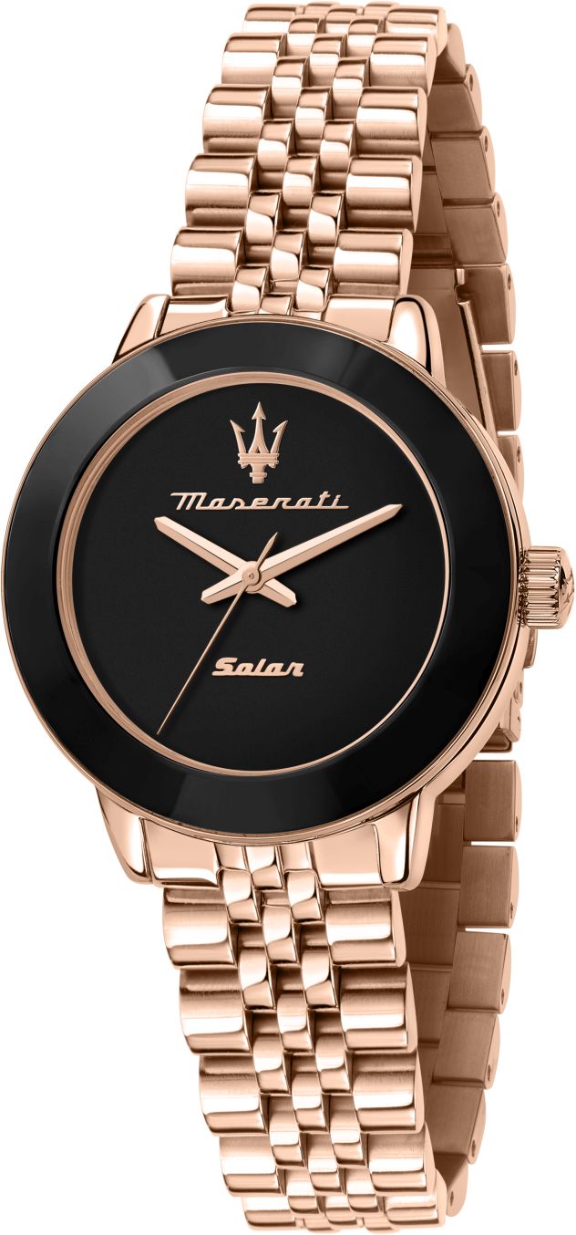 Maserati Successo Solar naisten rannekello R8853145513 Näyttävä Successo Solar naisten rannekello, jossa on valosta käyntienergian saava koneisto. Kellon runko ja ranneke on valmistettu punakullan... Lue lisää