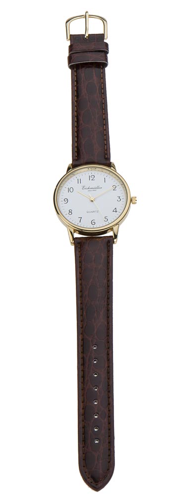 Kullan värisellä kuorella varustettu Eichmuller rannekello valkoisella selkeillä numeroilla.