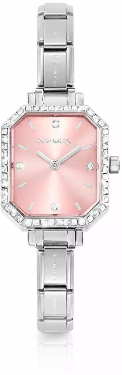 Nomination PARIS rannekello 076036-014 Ruostumattomasta teräksestä valmistettu Time-malliston kello, jossa on neliskulmion muotoinen kellotaulu. Valkoinen helmiästaulu, jota kiertää zirkkaat... Lue lisää