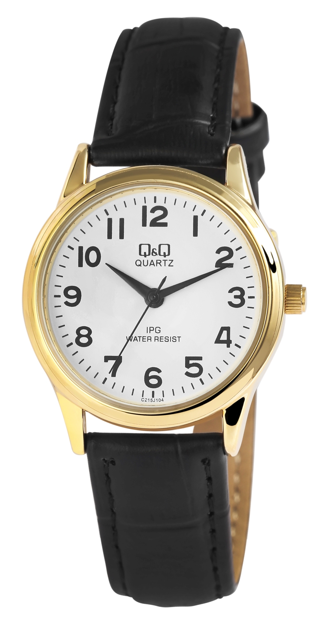 Q&Q Naisten rannekello kulta musta nahka C213J104