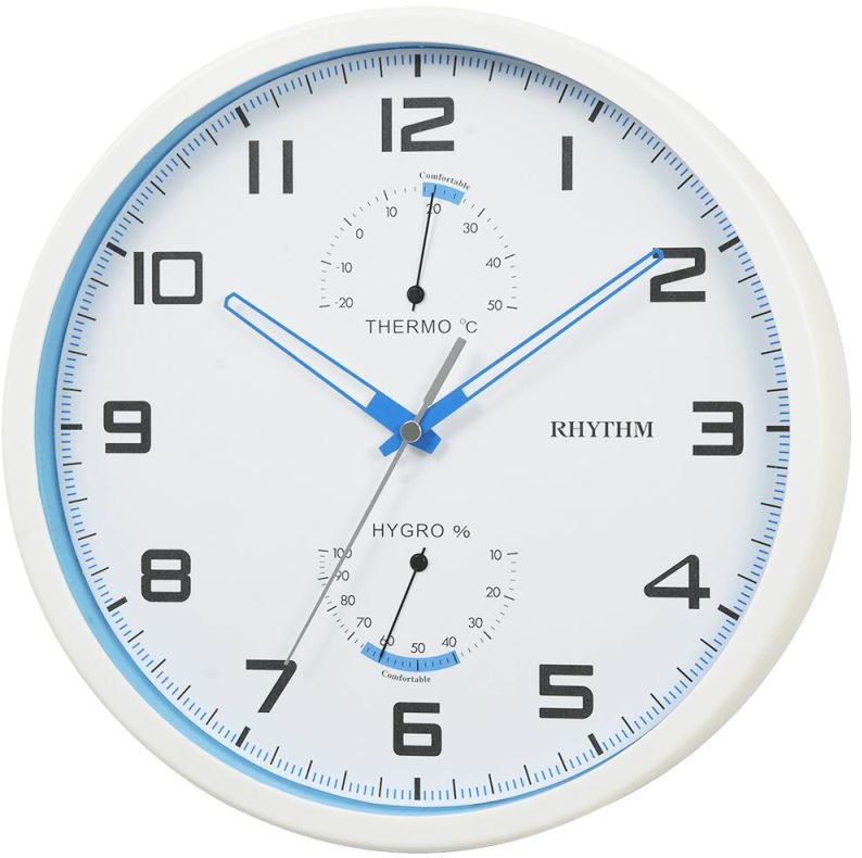Rhythm seinäkello CFG722-NR03 Halkaisija:26cm Materiaali: Muovi Toimii yhdellä AA paristolla Ominaisuudet: analoginen lämpömittari, kosteusmittari ja liukusekuntiosoitin.... Lue lisää
