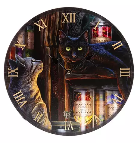Tuo kotiisi ripaus taianomaista tunnelmaa tällä viehättävällä Kissan taikakauppa -seinäkellolla! Kellon hurmaava kuvitus vie sinut keskelle pientä, mystistä putiikkia, jonka hyllyillä kimaltelevat taikajuomat, loitsukirjat ja salaperäiset esineet. Kelloa koristaa suloiset kissa­kauppiaat, jotka tarkkailevat aikaa yhtä tarkasti kuin taikavarastonsa aarteita.