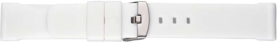 Valkoinen silikoniranneke on kestävä, vankka ja sen pehmeä materiaali tekee siitä mukavan käyttää. Se on erityisen ihoystävällinen. Yksinkertainen mutta urheilullinen muotoilu tekee siitä täydellisen lisäyksen mihin tahansa kelloon.