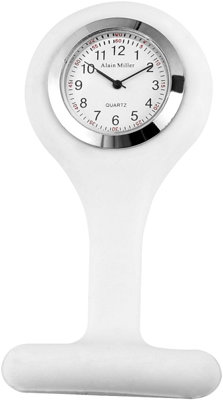 Työasuun ripustettava puhtaan valkoinen hoitajan kello.