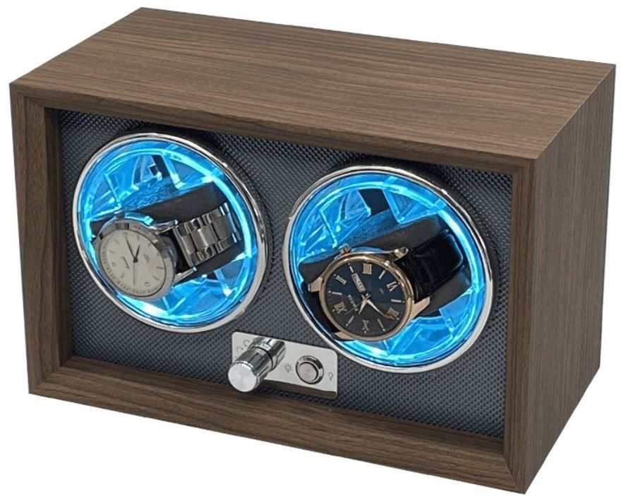 Winder Double Blue Light Tyylikäs Winderi mekaanisille kelloille automaattisella pyörityksellä. Kahden kellon pyörittäjä, toinen käynnistetään lisätilan kytkemisen jälkeen. Toiminta-aika... Lue lisää
