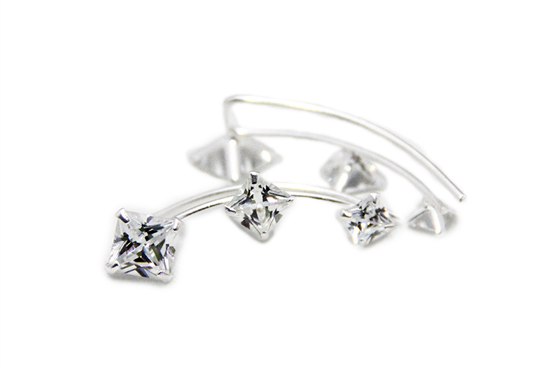 Neliö zirkonein koristellut kiipijä korvakorut, jotka valmistettu 925 hopeasta. Korvakorujen pituus on noin 2,3mm.