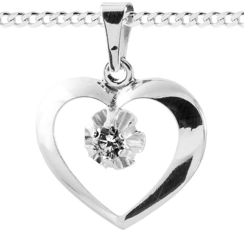 Kaunis Sterling-hopeasta valmistettu riipus, jonka keskellä komeilee kirkas zirkoni. Riipuksen koko on 18mm.